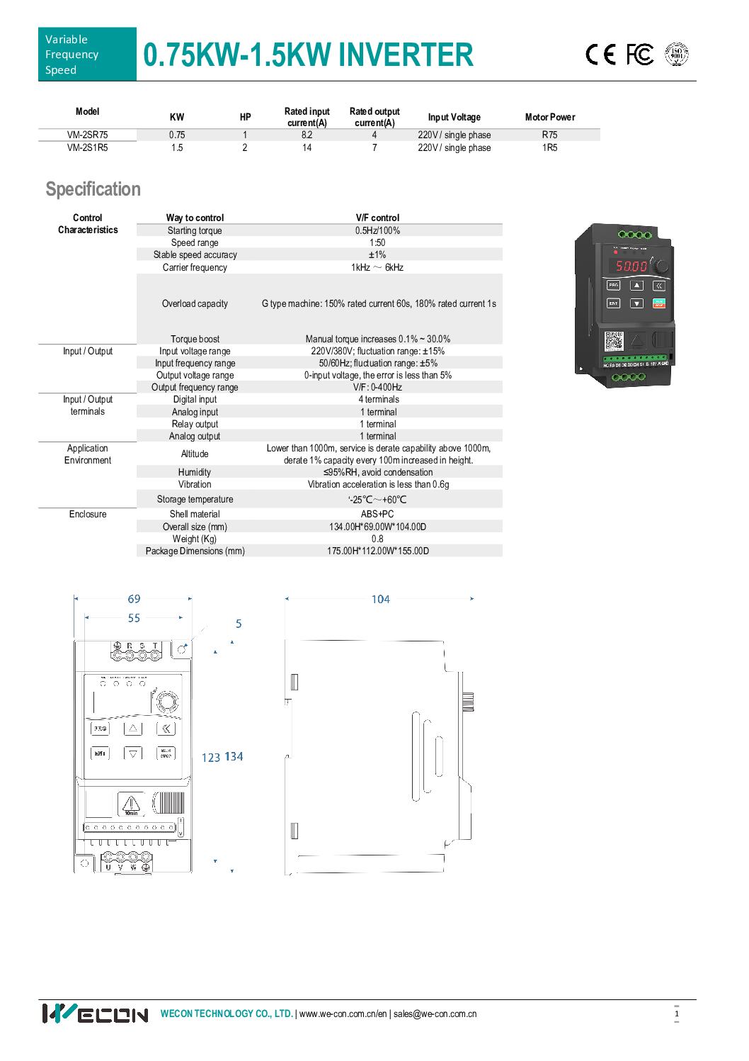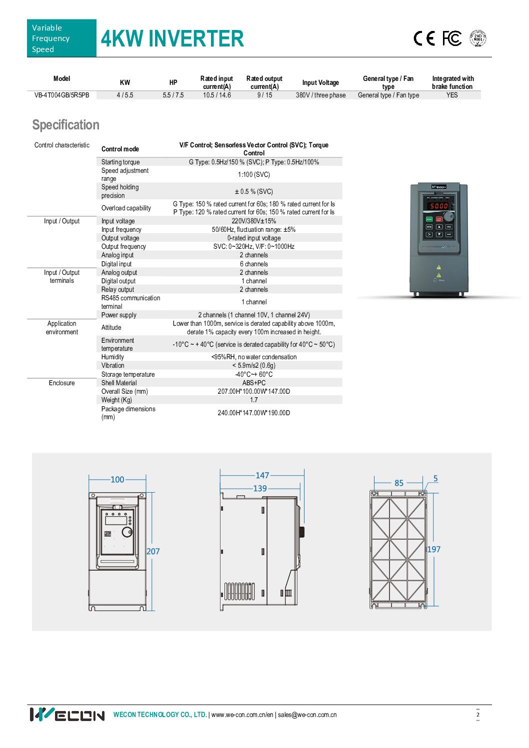 Servo Motores & Drive, VD2, VD2F, VD3E, Wecon