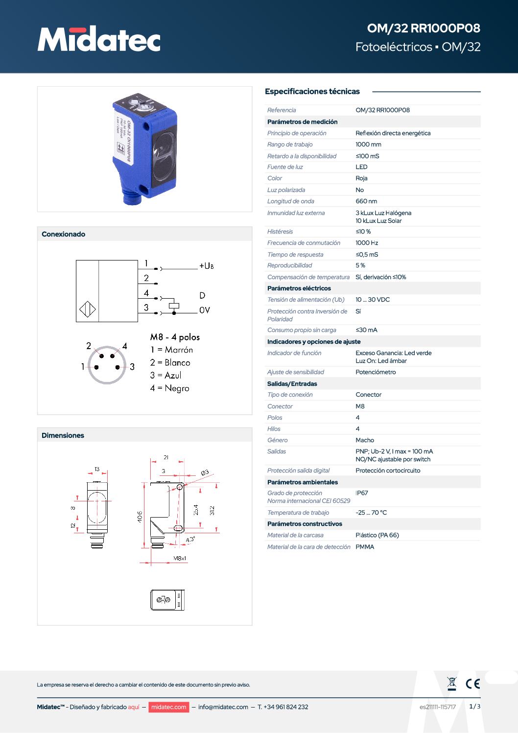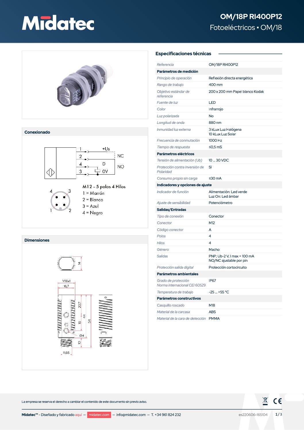 Sensor Otico,M18,12~24vdc,PNP,De...